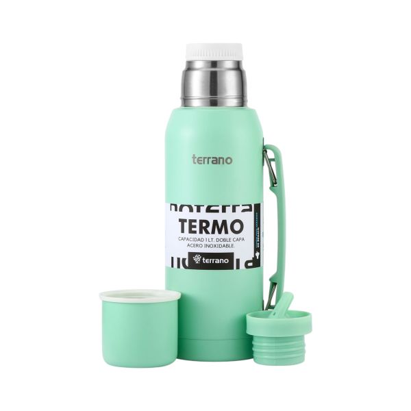 Termo Terrano 1 lt con manija movil Capacidad 1 litro con pico repuesto de regalo dura 20 hrs caliente