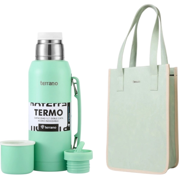 ¡COMBO MARKETPLACE! TERMO TERRANO 1LT VERDE AGUA + BOLSO MATERO TERRANO JADE