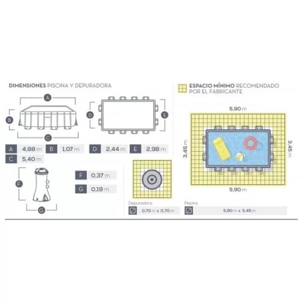 - Para una óptima utilización y durabilidad de la piscina Intex, se recomienda seguir las indicaciones marcadas en el manual.