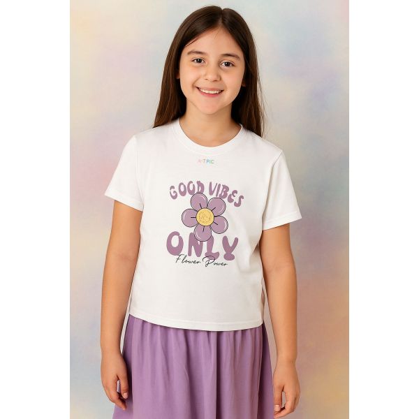 Remera Infantil Blanca con Diseño de Good Vibes - Suave y Cómoda